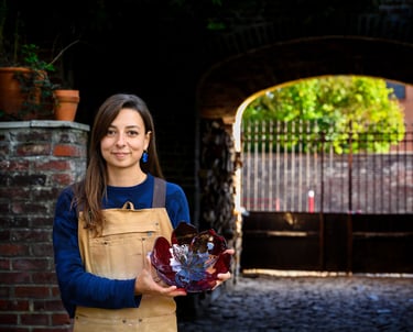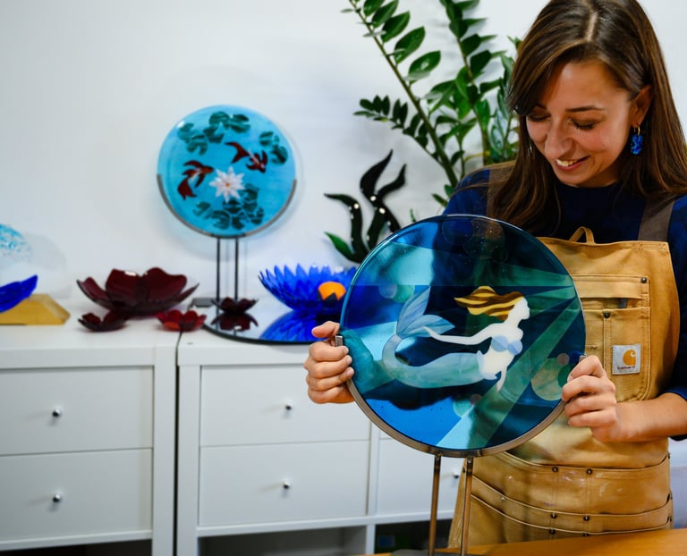 Je pratique le fusing, l'art de fusionner le verre, que je travaille à froid et transforme grâce à une cuisson au four. Tu veux en savoir plus ?