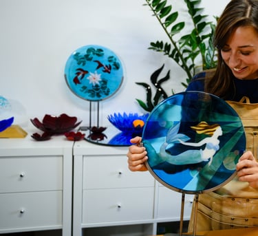Que ce soit pour décorer votre table ou votre fenêtre, mes créations en verre apporteront une touche de poésie à votre intérieur.