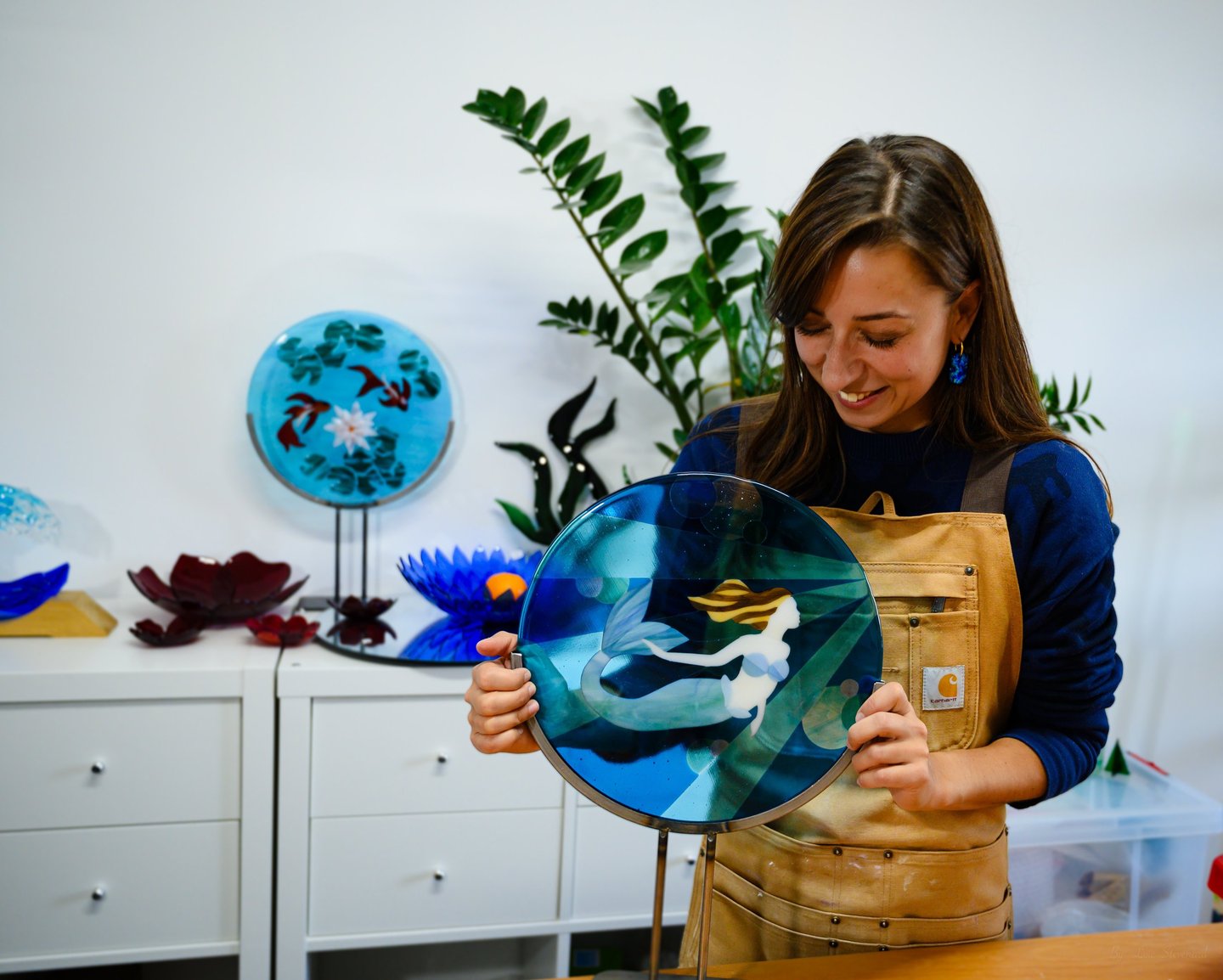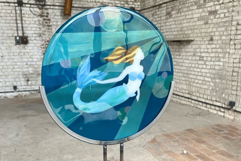Je pratique le fusing, l'art de fusionner le verre, que je travaille à froid et transforme grâce à une cuisson au four. Tu veux en savoir plus ?